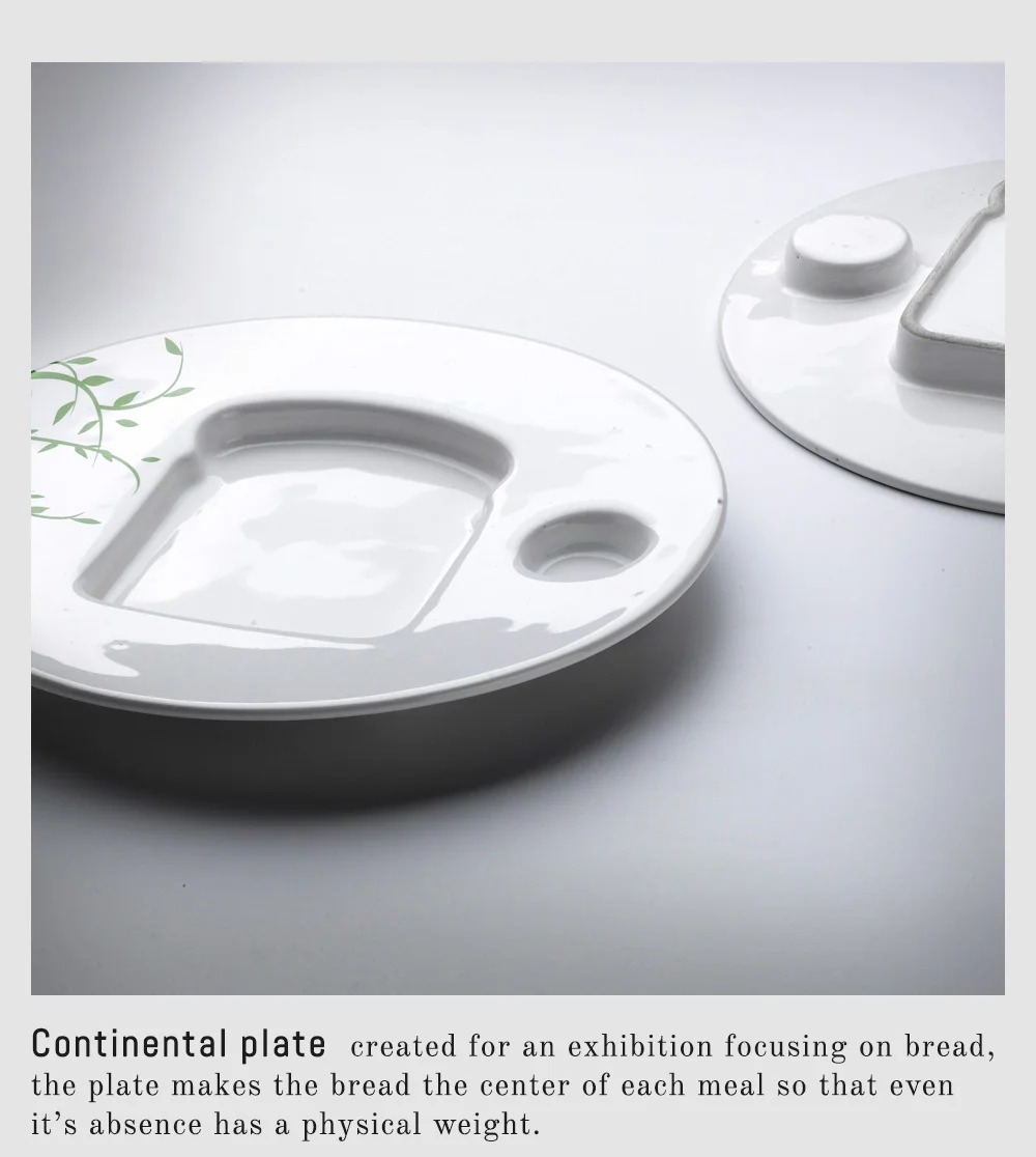 created for an exhibition focusing on bread, the plate makes the bread the center of each meal so that even it’s absence has a physical weight.