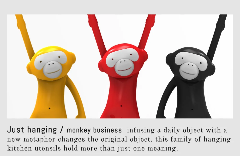 A set of three kitchen hooks emphasizing the act of “just hanging”. The process of infusing a daily object with a new metaphor changes the original object and experience both visually and functionally – by adding color, story and different hanging combinations.